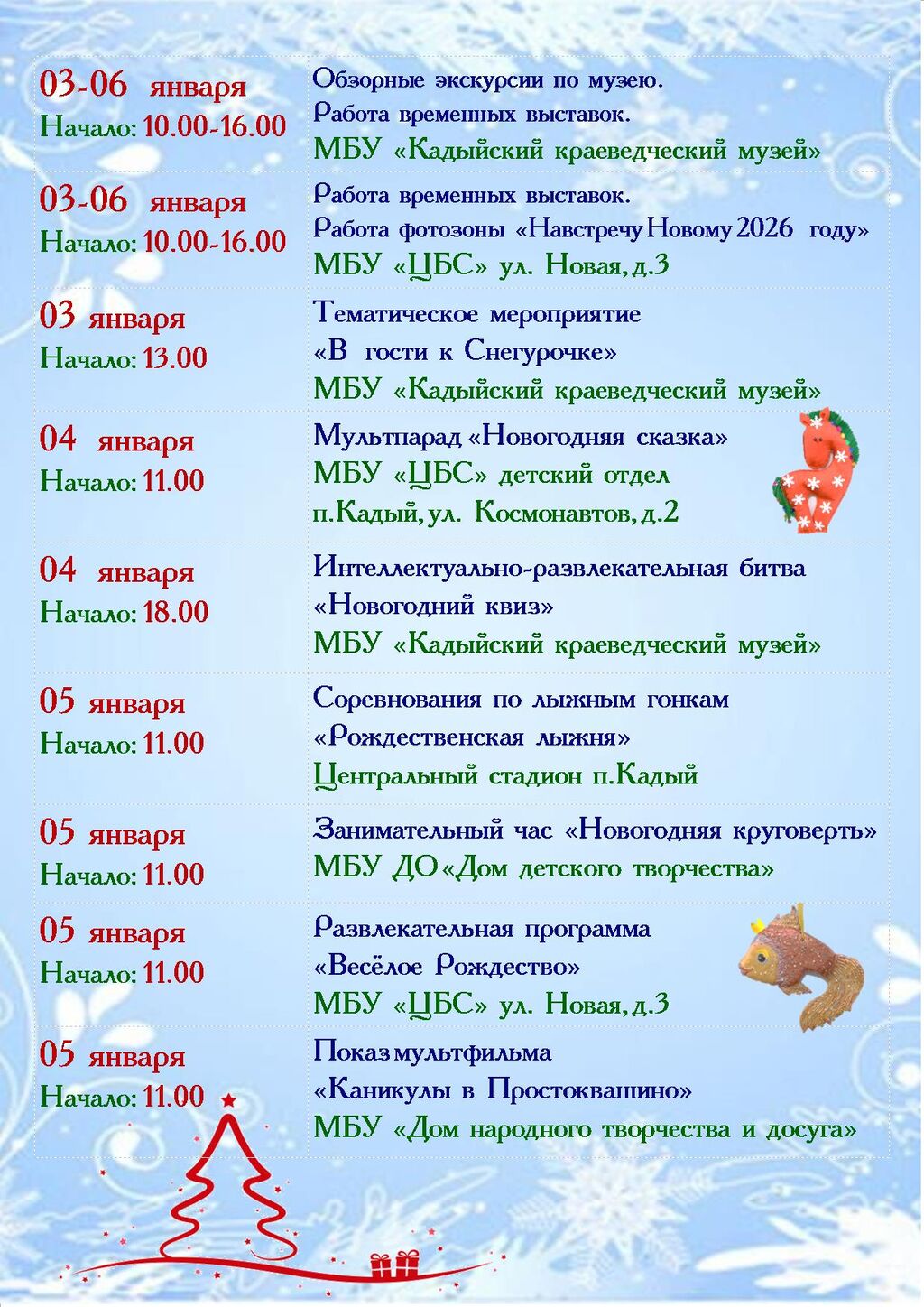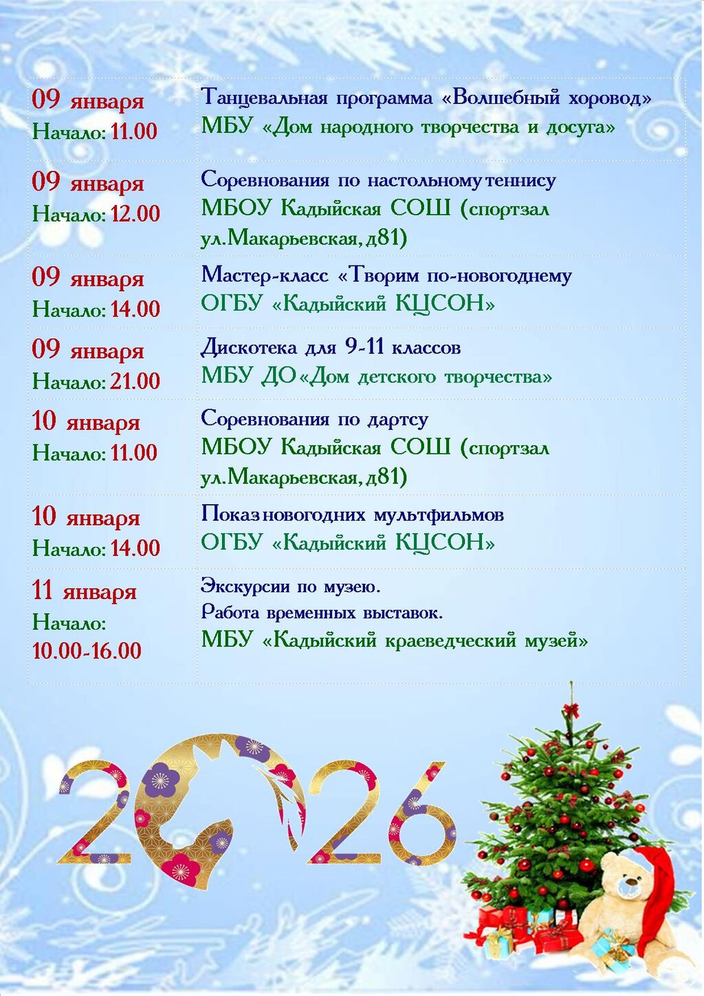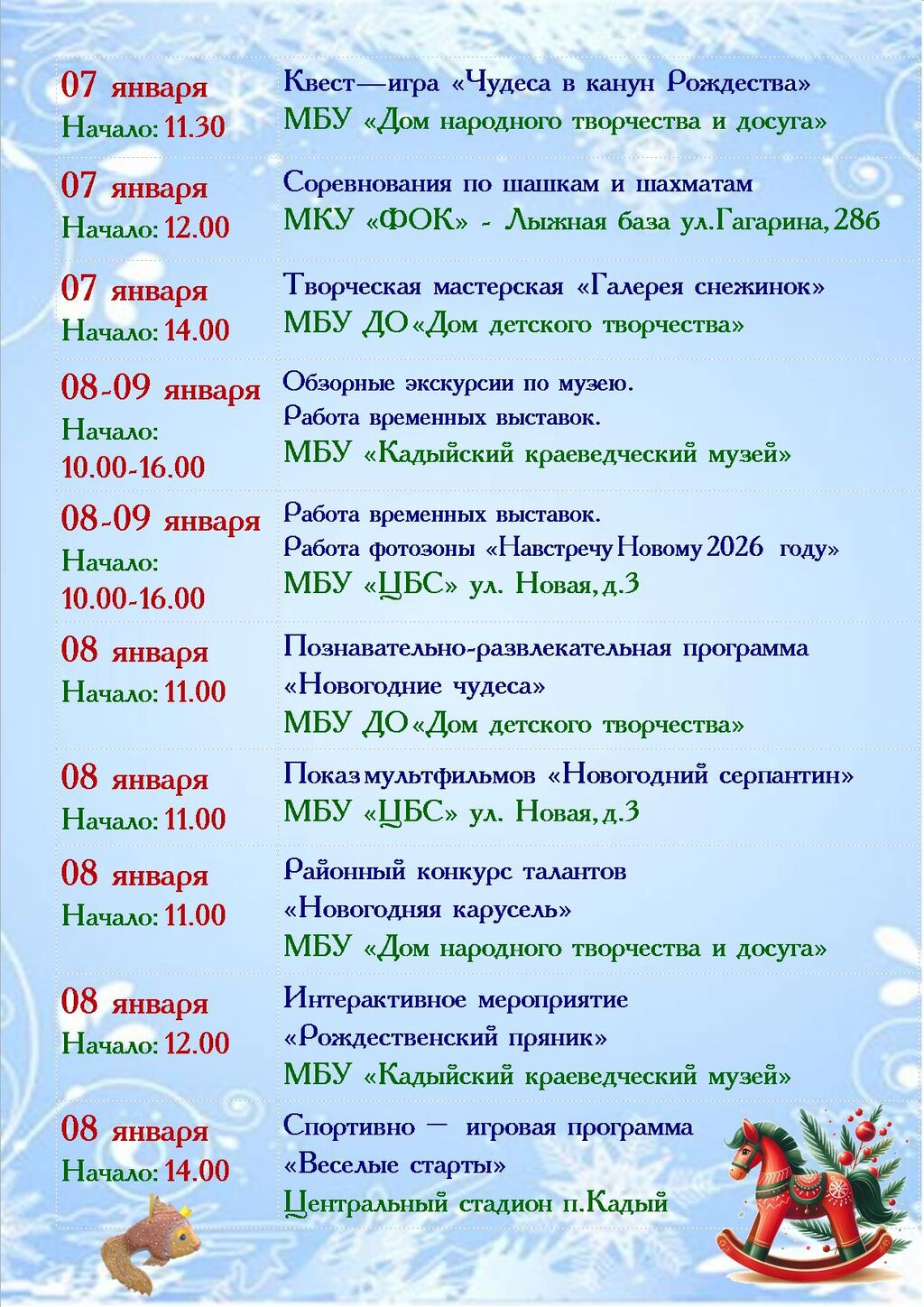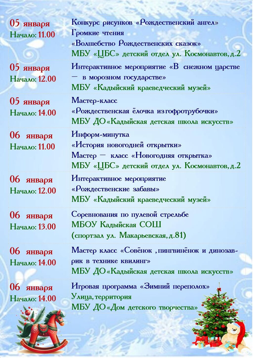 МУНИЦИПАЛЬНОЕ БЮДЖЕТНОЕ УЧРЕЖДЕНИЕ "ЦЕНТРАЛЬНАЯ БИБЛИОТЕЧНАЯ СИСТЕМА" КАДЫЙСКОГО МУНИЦИПАЛЬНОГО ОКРУГА адрес: 157980, Костромская обл, пгт Кадый, ул Новая, д 3 тел.: +74944234528