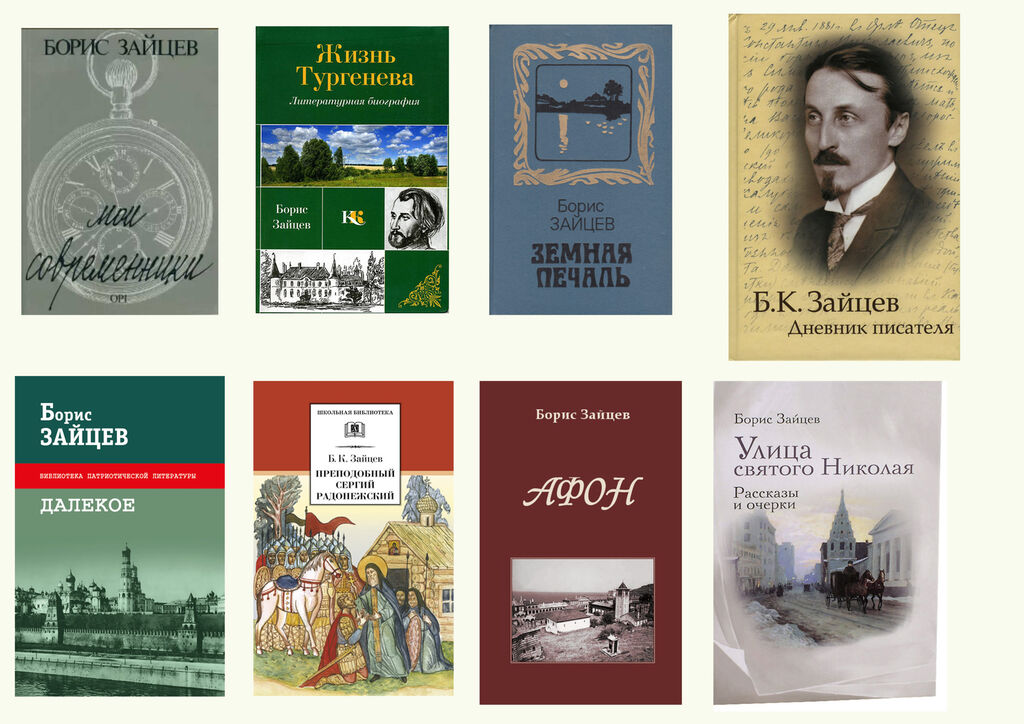 Автор знаменитый биографий "Жизнь Тургенева" (1932), "Жуковский" (1951), "Чехов" (1954). Борис Зайцев вошел в историю родной литературы как превосходный мемуарист. Он оставил очерки о десятках литераторов, актеров, ученых, современником которых он был. Они собраны в книги воспоминаний "Москва" и "Далекое". Его перу также принадлежит четырехтомная автобиографическая эпопея "Путешествие Глеба", состоящая из романов "Заря", "Тишина", "Юность" и "Древо жизни".
