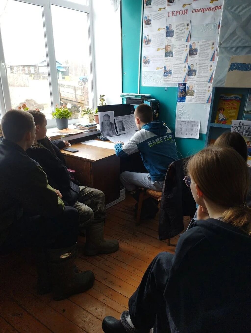 Обзор у информационного стенда "Достойный сын России"